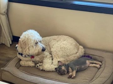 Stoffel "Waffle" was the pack grandpa goldendoodle. In his younger years he was an excellent deer tracker. He was best buds with Tipsy who kept him young until his passing in late 2025. He prided himself on dragging shoes, socks and (uh-hum) underwear to the backyard for all the neighbors to see!